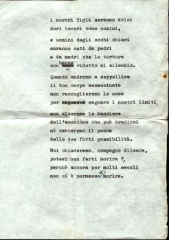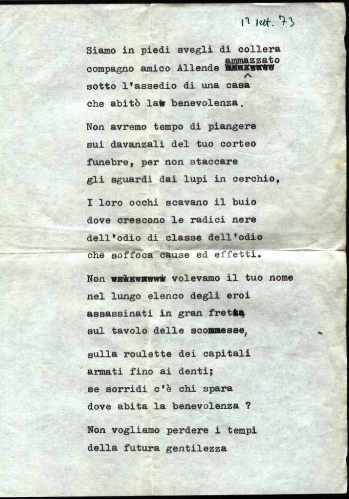 La notte tra l’11 e il 12 settembre 1973 una persona a me molto cara dedicò questi versi a Salvador Allende.