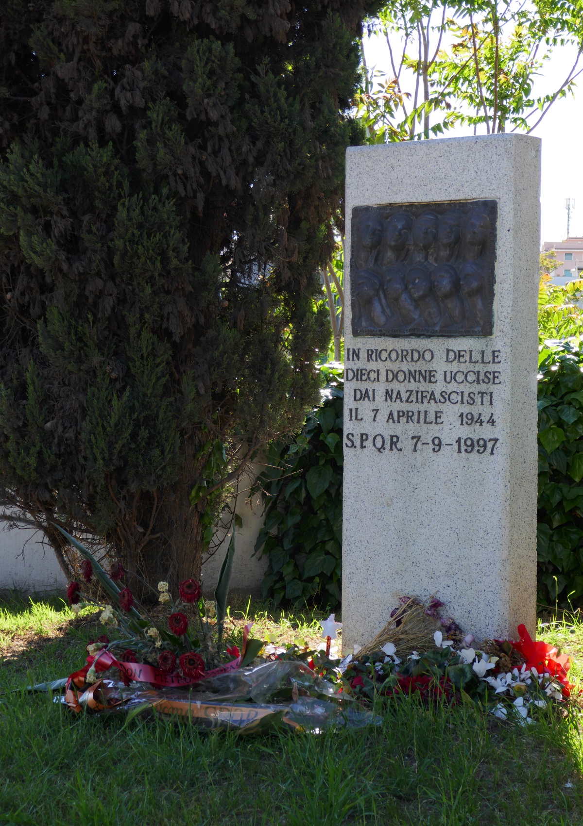 21) La mattina del 7 aprile 1944, all’Ostiense, una folla di donne e ragazzini assale il forno Tesei. La situazione di Roma è ormai disperata. La popolazione è affamata e infuriata. Le rivolte per il pane sono sempre più frequenti. Intervengono militi della Gnr e SS. Prendono dieci donne, le portano sul Ponte di Ferro e le uccidono a colpi di mitra. I cadaveri restano abbandonati per l’intera giornata, circondati da sacchi di farina e pagnotte. Oggi un monumento – eretto grazie all’Unione donne italiane e a Carla Capponi – ricorda Clorinda Falsetti, Italia Ferraci, Esperia Pellegrini, Elvira Ferrante, Eulalia Fiorentino, Elettra Maria Giardini, Concetta Piazza, Assunta Maria Izzi, Arialda Pistoiesi e Silvia Loggreolo.