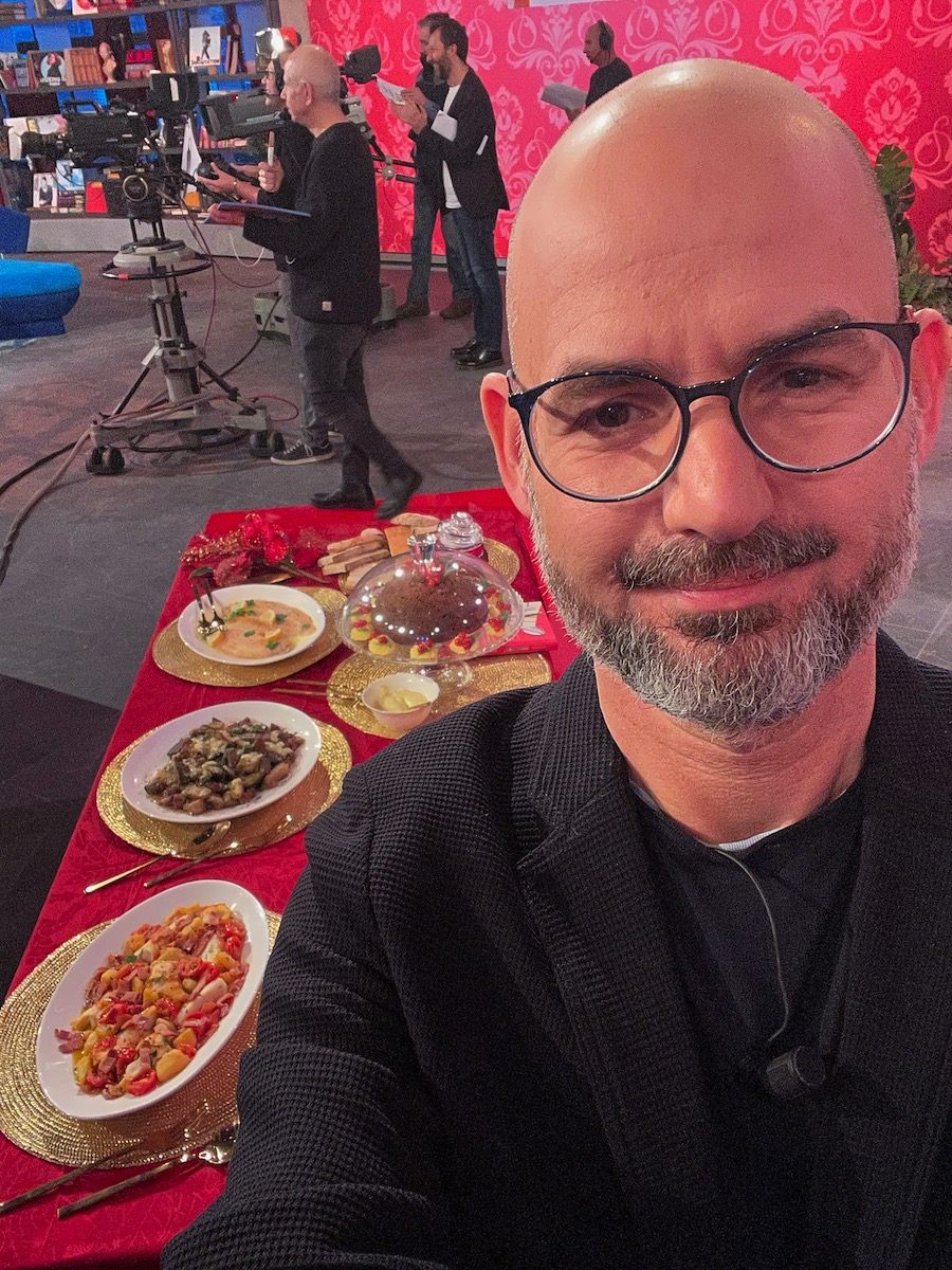 Immagino che mia madre si sarebbe divertita molto a illustrare, assieme alla conduttrice Serena Bortone, questa tavola di piatti ricavati dal suo libro: Pranzi d’autore. Le ricette della grande letteratura, minimum fax. È una proposta di cena natalizia offerta dalla trasmissione Oggi è un altro giorno (dal minuto 1:20:19). Ho fatto del mio meglio per sostituire mia madre. Poi ci ho infilato anche un selfie stupidino. Ed ecco il menu. Sono stati preparati seguendo fedelmente le ricette: