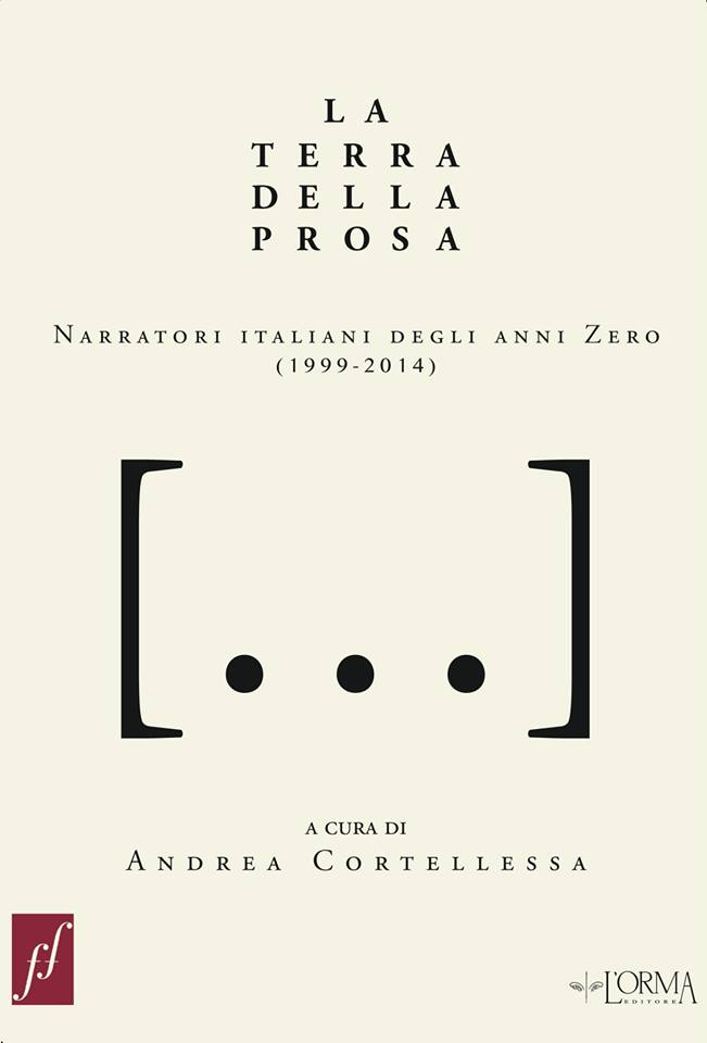 - Andrea Cortellessa (a cura di), La terra della prosa. Narratori italiani degli anni Zero (1999-2014)., L’Orma Editore 2014. In questa antologia le pagine che mi riguardano sono: 804-835. «Nel nuovo millennio in Italia hanno già esordito 30 narratori che vale davvero la pena di leggere. Questo libro li contiene tutti.»