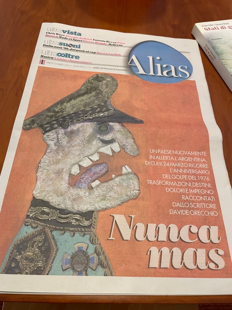 Su Alias del Manifesto ragiono su alcuni libri nati nel passato recente e più lontano dell’Argentina, da Marta Dillon a Ricardo Piglia, e su quali libri potranno nascere nel brutale “regno” di Milei. L’articolo si può leggere qui, o anche in pagina, con la bella copertina e le illustrazioni (penso che ne valga la pena). Esattamente 10 anni fa pubblicavo il mio romanzo ‘argentino’, Stati di grazia. Anche quel libro, ‘si parva licet’, figlio di un clima. Nel pezzo ne ricostruisco la nascita, e ricordo le persone e i luoghi che lo ispirarono. Non avrei mai immaginato di farlo in un tempo così radicalmente cambiato.