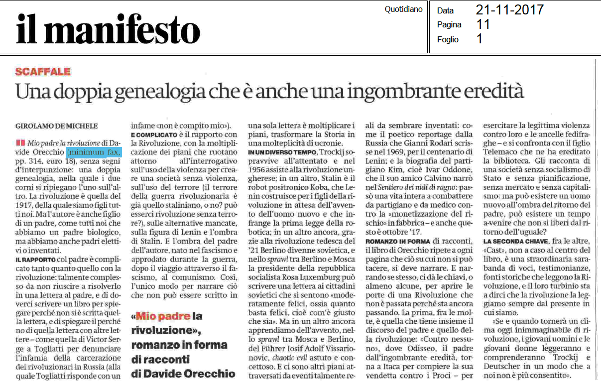 “Perché si racconta una storia? Forse per poterla capire. La scrittura narrativa parte spesso da quel bisogno lì. Comprendere cosa è successo mentre lo si racconta. Comprenderlo grazie al racconto. Ma ci sono storie e storie. Alcune sono talmente esemplari, feroci, stupefacenti e memorabili che non le si capirà mai fino in fondo, né le si vorrà dimenticare. Allora il racconto dovrà essere trasmesso di voce in voce, di scrittura in scrittura, di generazione in generazione.