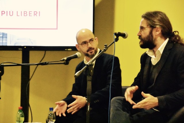 Ieri (8 dicembre 2017) alla presentazione di Mio padre la rivoluzione a Più libri più liberi (che mi pare sia stata ok) con l’Amazing, splendido scrittore e relatore Giordano Meacci, non ho avuto la prontezza di spirito di alzarmi e fotografare chi era venuto a sentirci, nella sala piena, io chiedendo il permesso, così da immortalare e ringraziare tutti, da A. agli amici, dai compagni di minimum fax, che hanno fatto questo libro con me, alle compagne e ai compagni di strada, infine agli aristocratici: lettrici e lettori. Il fatto è che ero teso per le parole da pronunciare, quelle che avrei detto di lì a poco, perché bisogna dire le parole esatte, oltre che scriverle. Il nome della sala era Sirio, le pareti tutte gialle senape. Non so se questo abbia un significato. Ho immaginato che un bolscevico potesse unirsi a noi per testimoniare sulla rivoluzione dietro a schermi anonimizzanti che riparassero la sua identità, in posa da aula bunker, e col microfono filtro a falsificargli la voce.